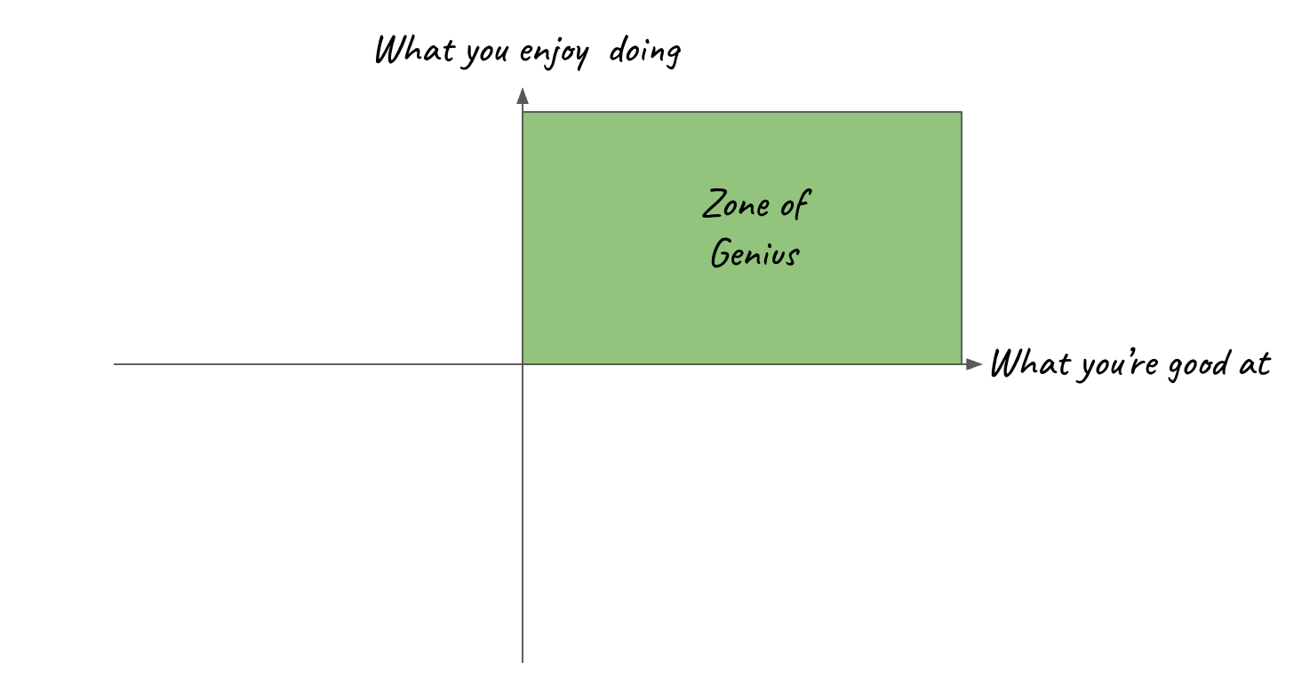 My personal goal is to spend 80% of my time in the zone of genius. There’s always a 20% “tax”. And that’s after 10 years of running Dialogue and ~20 years as an entrepreneur. Obviously, it’s harder earlier in the journey but just being aware of the concept and working towards it can be helpful.