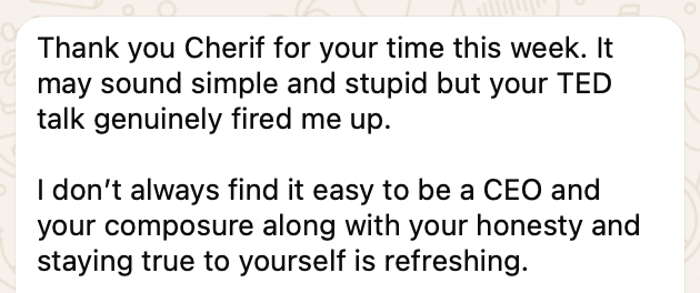 PS: A few days after that breakfast, the CEO in question sent me the text below. I’ll take the “TED talk” comment as a compliment 😎